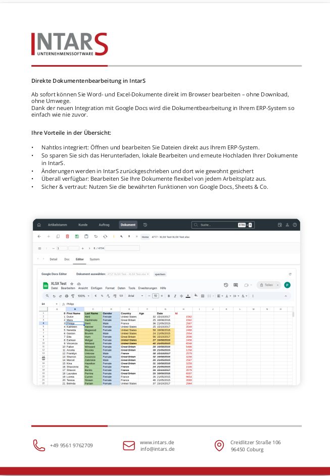 Direkte Dokumentenbearbeitung in IntarS